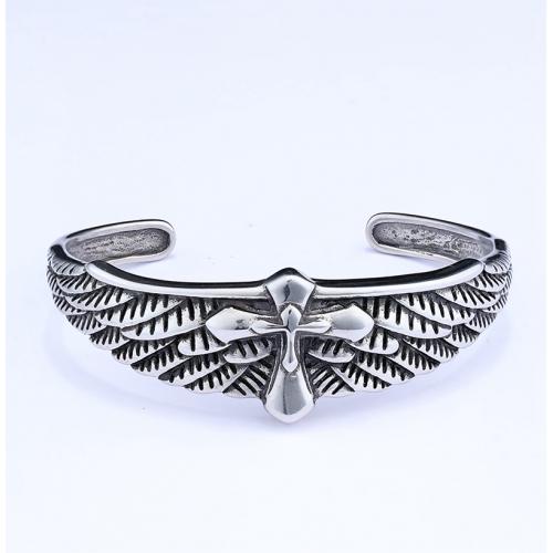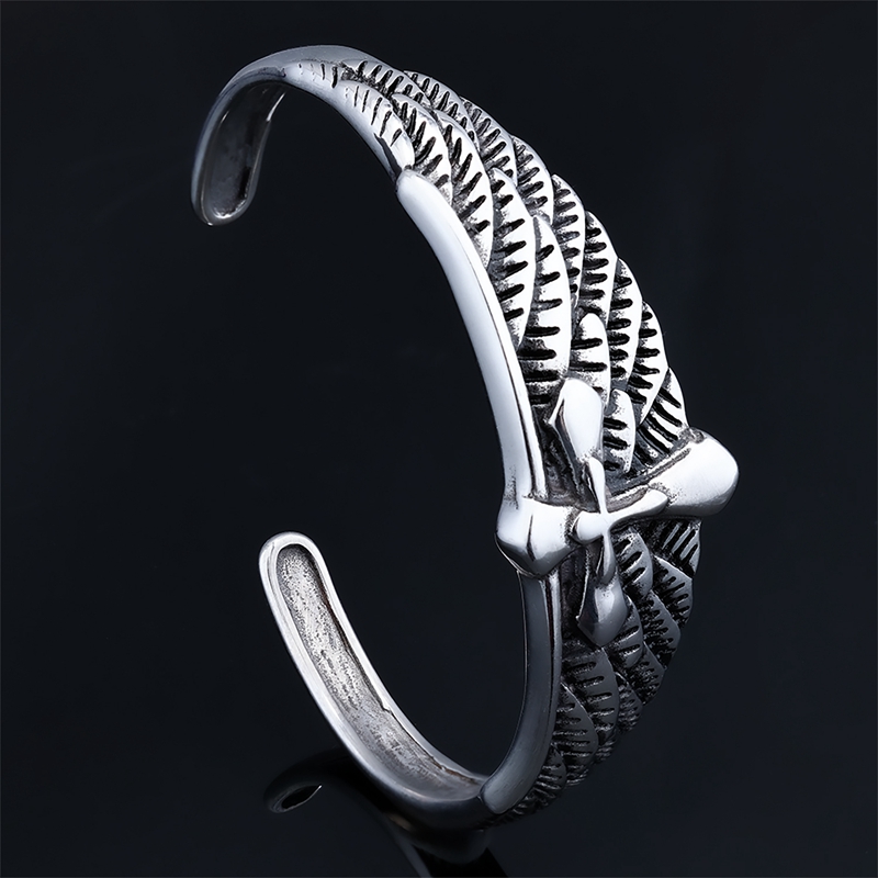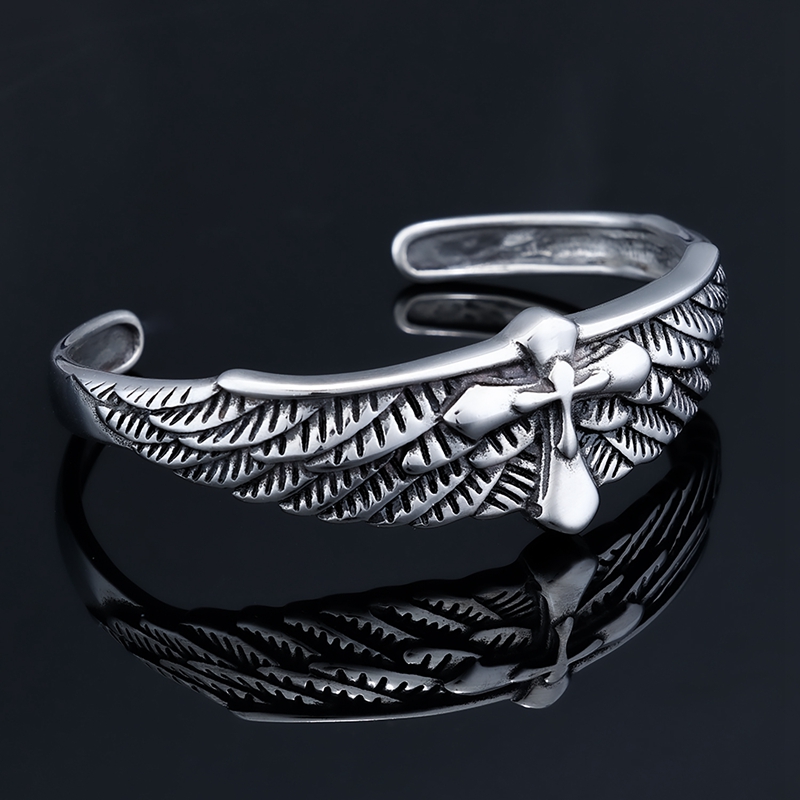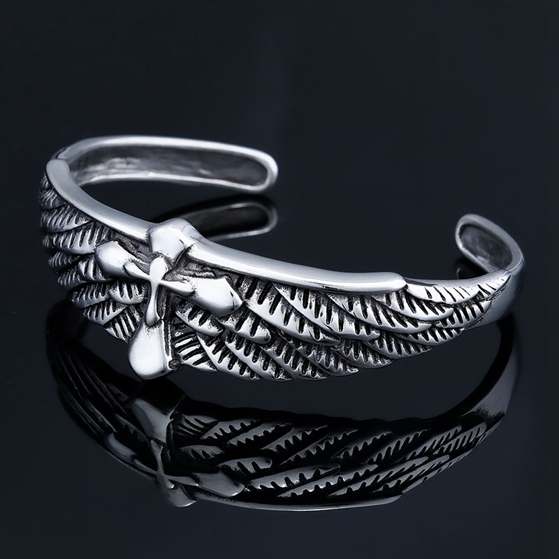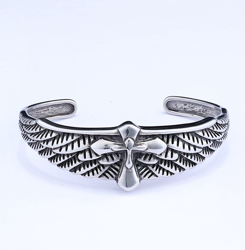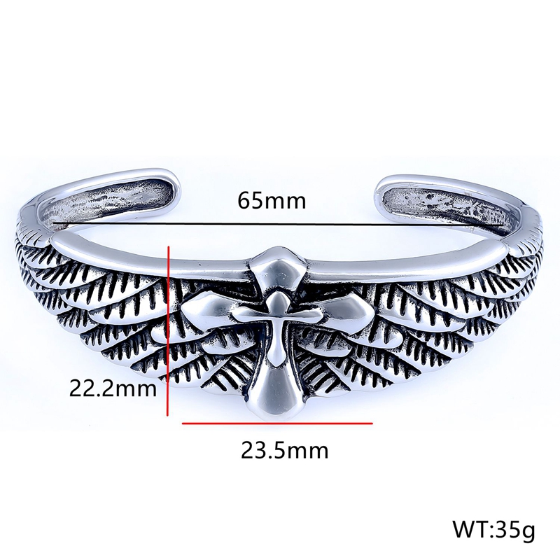 不锈钢十字架羽毛手镯AB0202