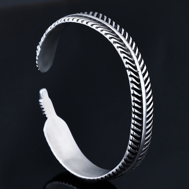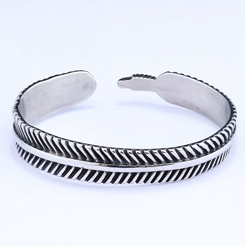 不锈钢简约风复古朋克羽毛开口手镯AB0309