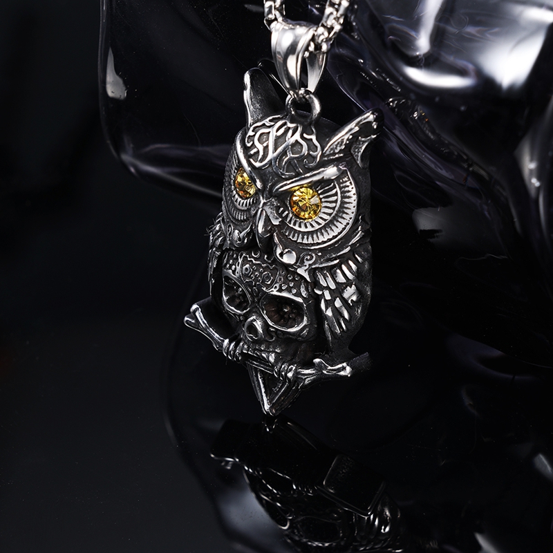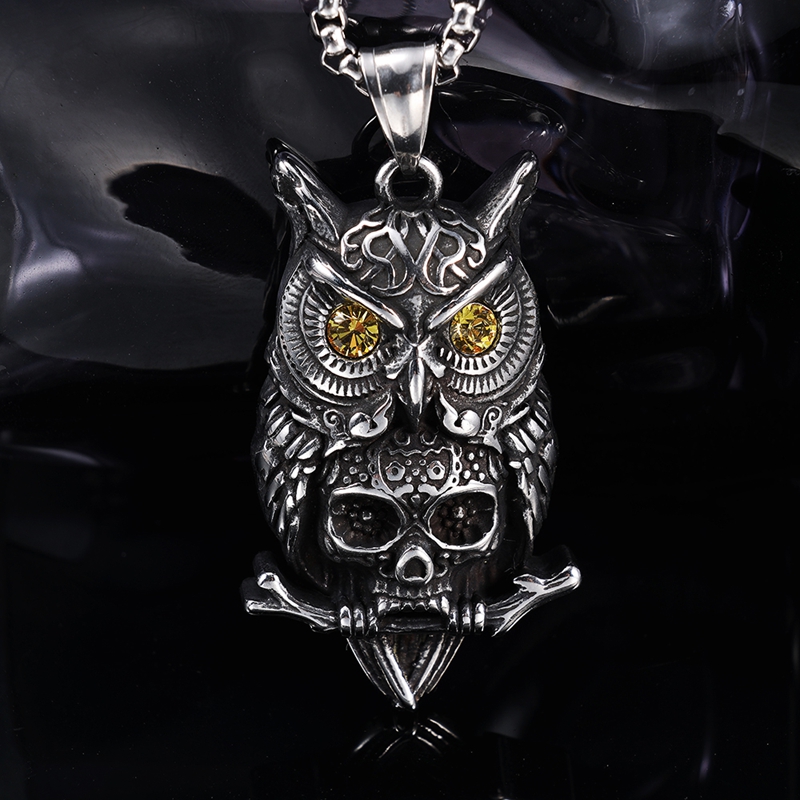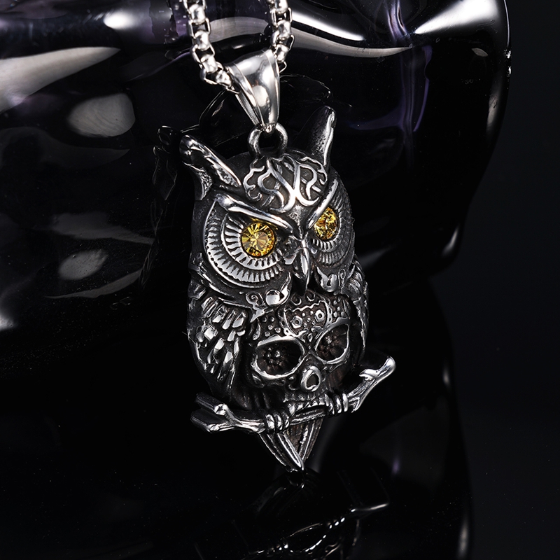 镶钻猫头鹰骷髅头吊坠B0522