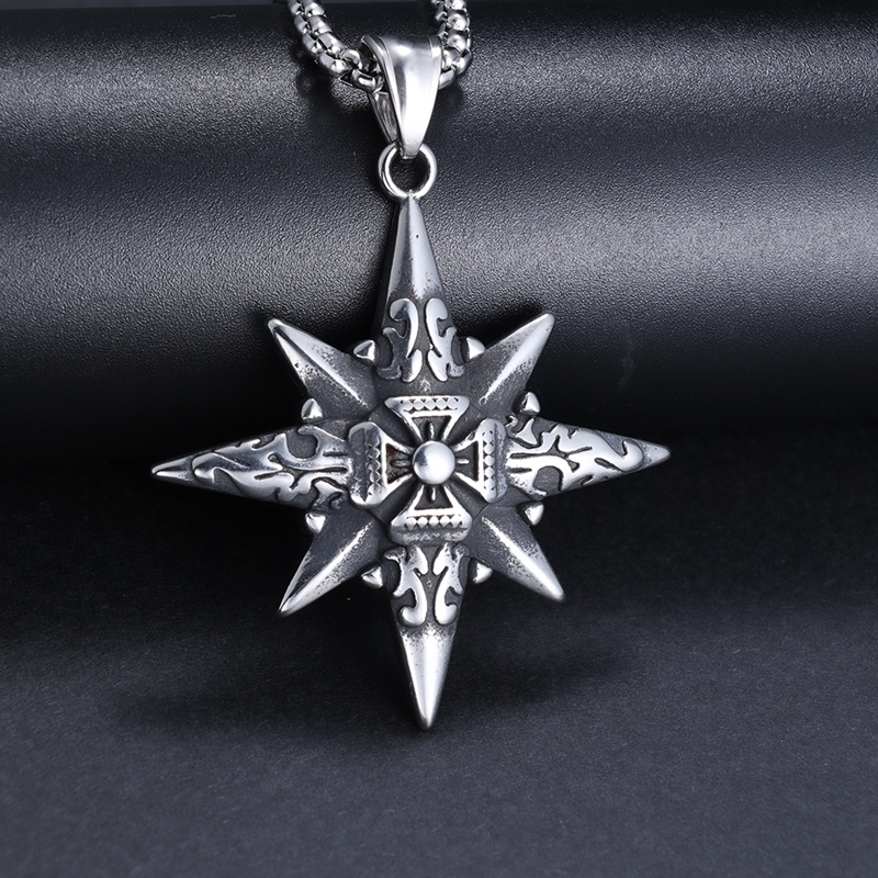 八角星指南针罗盘吊坠B0807