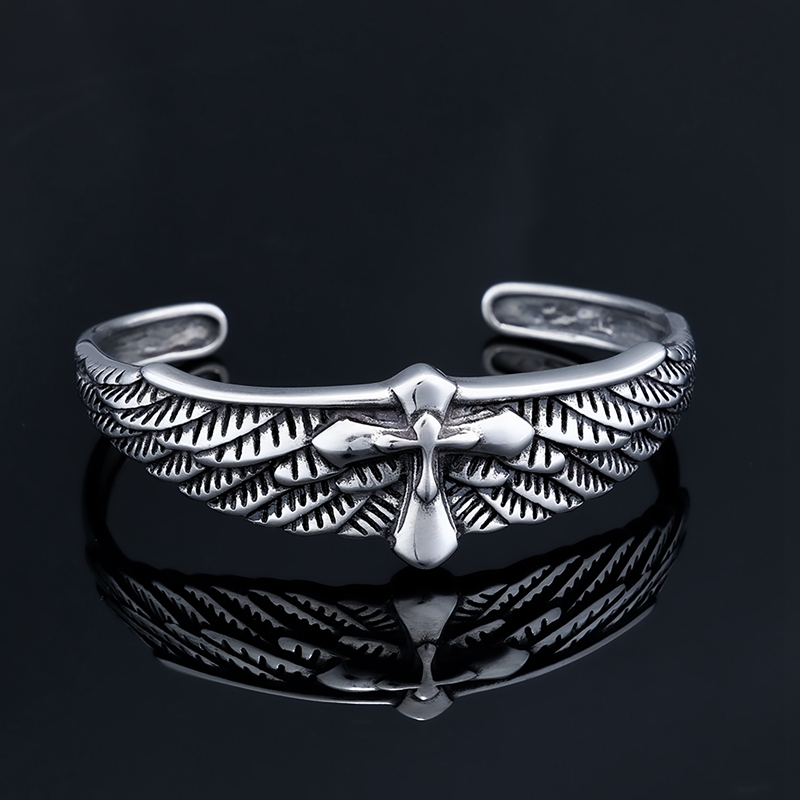 不锈钢十字架羽毛手镯AB0202