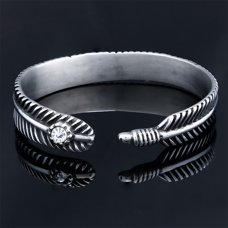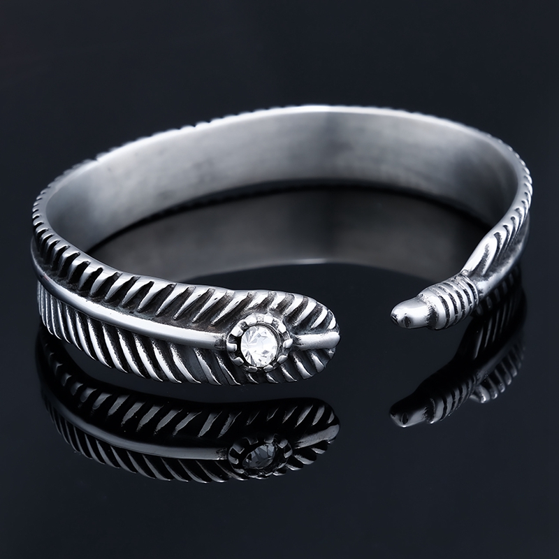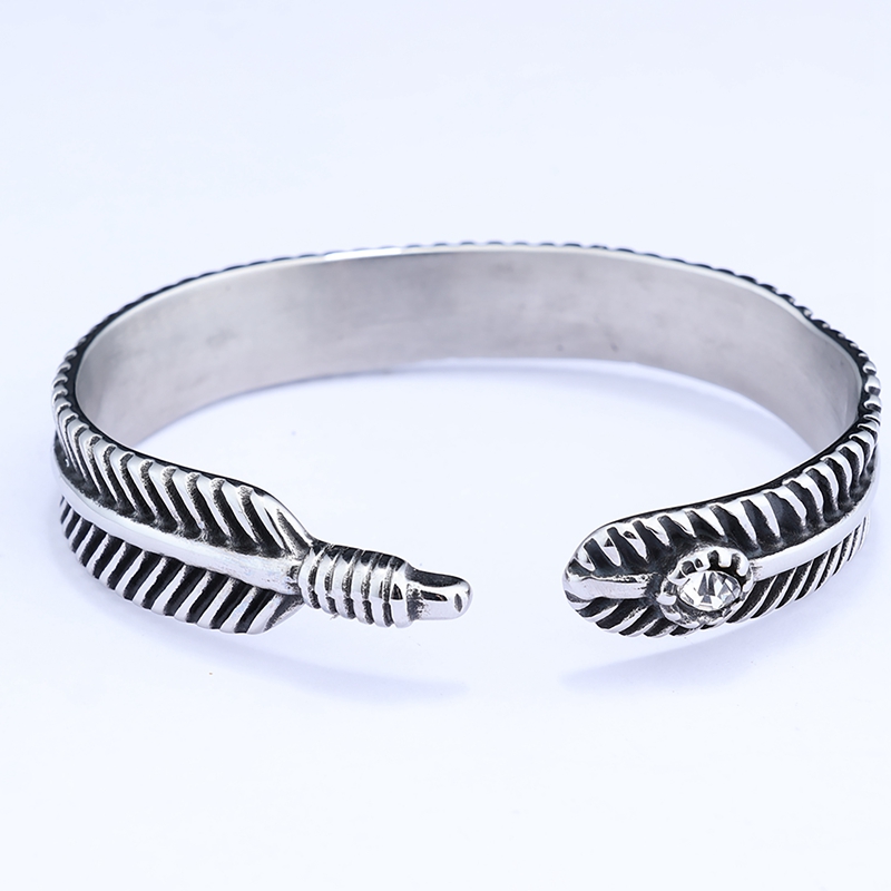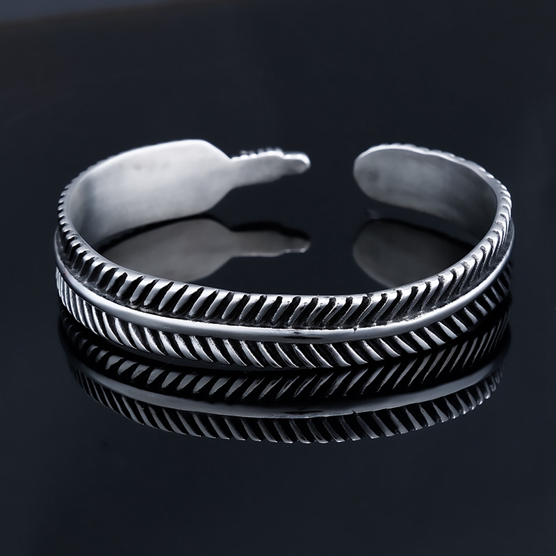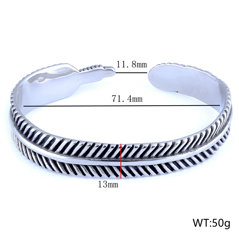不锈钢简约风复古朋克羽毛开口手镯AB0309
