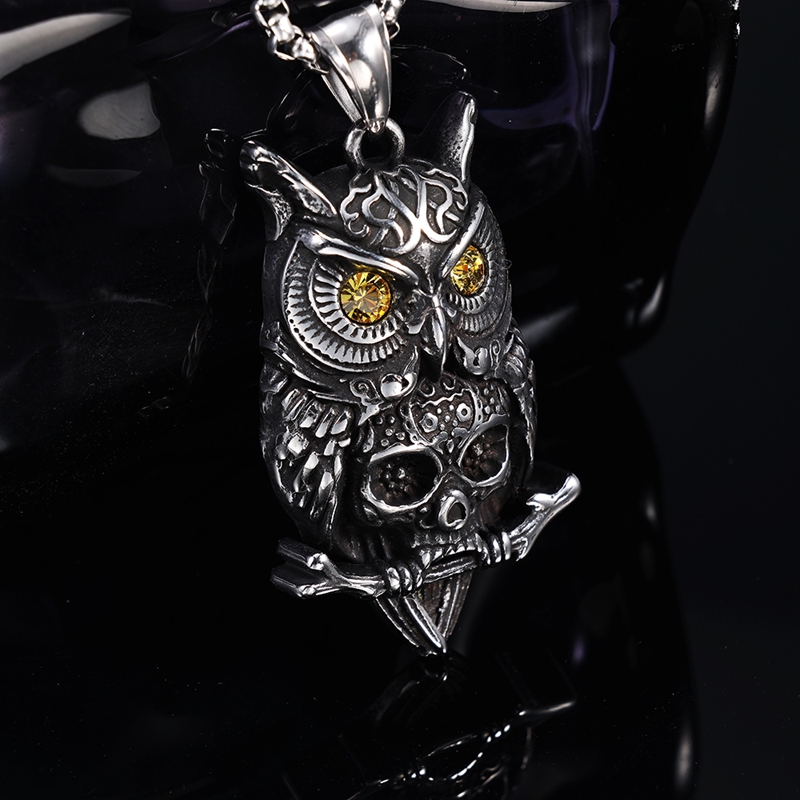 镶钻猫头鹰骷髅头吊坠B0522