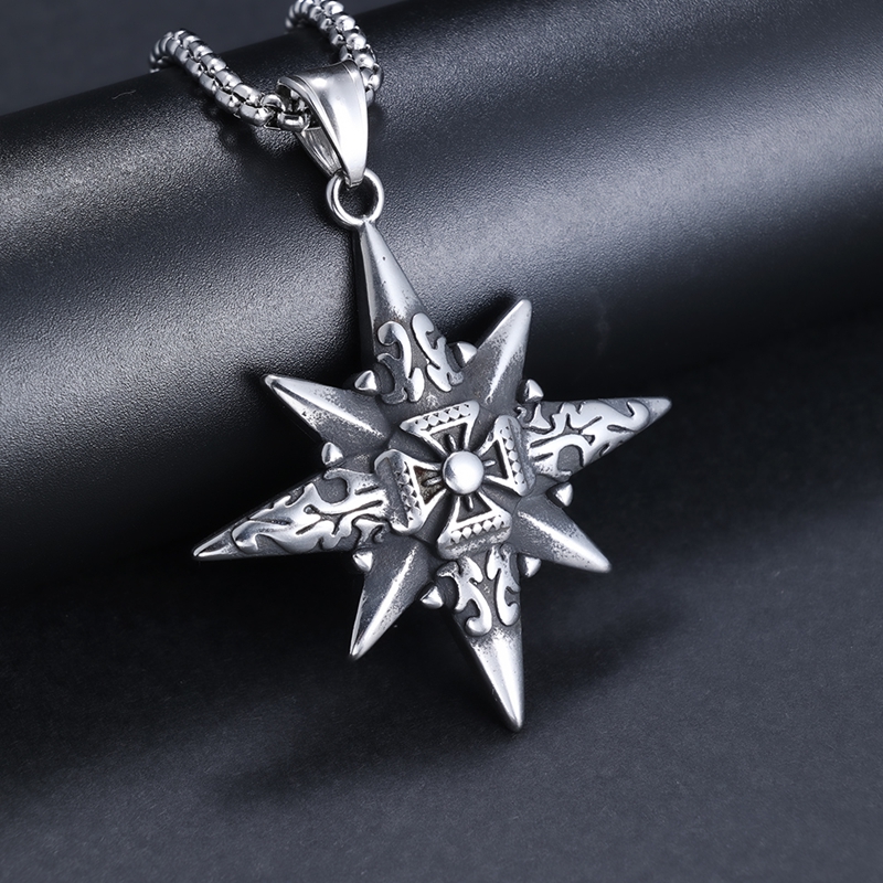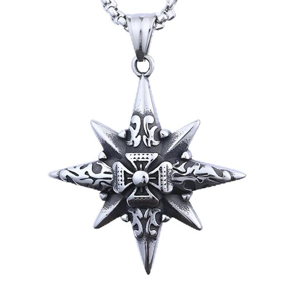八角星指南针罗盘吊坠B0807